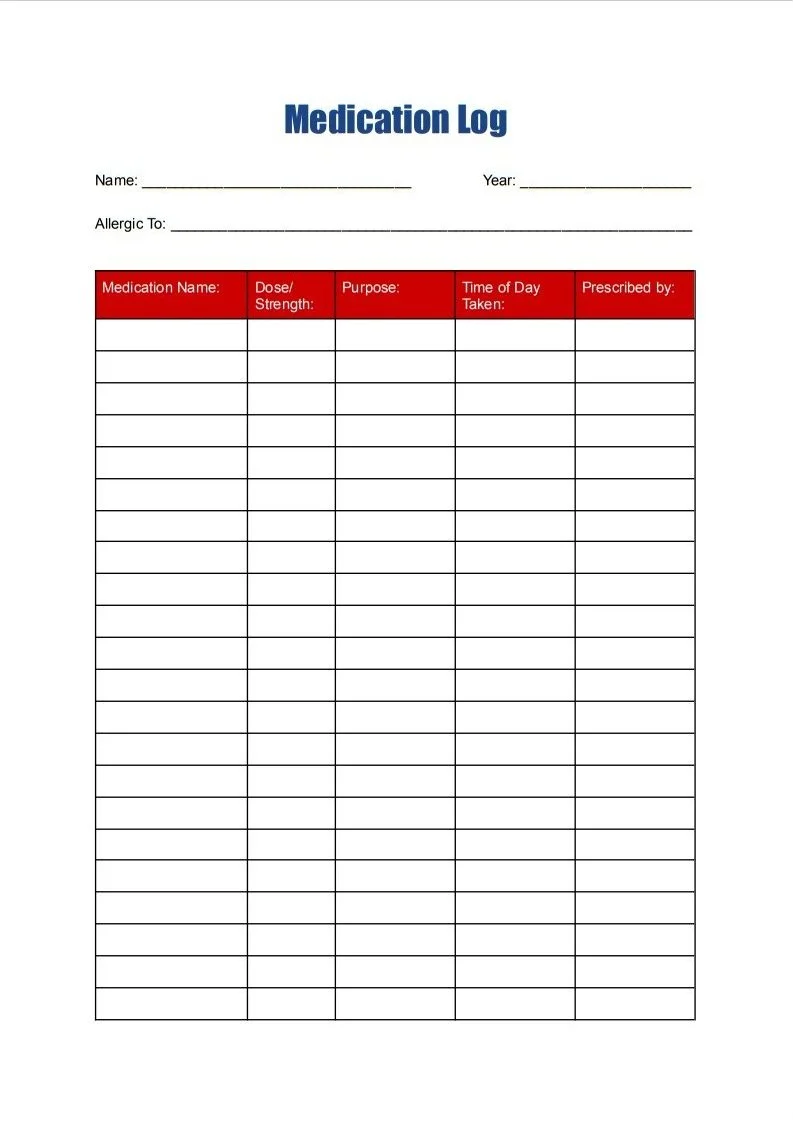 A Printable log to keep track of all of your medications. Please bring this list to your appointment for ongoing review.